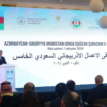 Bakıda Azərbaycan-Səudiyyə Ərəbistanı Birgə İşgüzar Şurasının 5-ci iclası keçirilib. Kiçik və Orta Biznesin İnkişafı Agentliyinin (KOBİA) və Səudiyyə Ərəbistanının Palatalar Federasiyasının təşkilatçılığı ilə keçirilən tədbirdə hər iki ölkədən rəsmi şəxslər, iş adamları, biznes assosiasiyalarının rəhbərləri və AQİSA idarə heyətinin sədri iştirak edib.