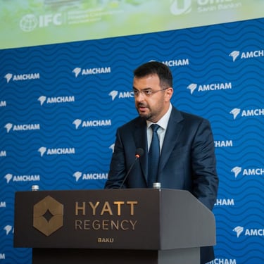 AmCham Azərbaycanın İcraçı Direktoru xanım Gülnarə Aslanbəyli və yeni seçilmiş AmCham Azərbaycan Prezidenti cənab Dəyanət Sadullayev iştirakçıları səmimi şəkildə salamladılar. Açılış nitqində cənab Sadullayev AmCham-ın əsas missiyasını vurğuladı: Azərbaycanın hər yerində bizneslərin inkişafına və davamlılığına dəstək vermək. O, 2024-cü ildə əldə olunan əhəmiyyətli nailiyyətlərdən, o cümlədən Palatanın əsas strateji sütunlarından biri olan ESG (Ətraf mühit, Sosial və İdarəetmə) təcrübələri sahəsində özəl sektorun biliklərini artırmaq üçün nəzərdə tutulmuş əhatəli resurs – AmCham Dayanıqlılıq Təlimatının təqdimatından bəhs etdi.